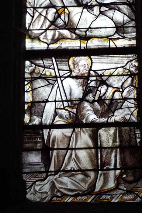 Cinq vitraux. Baies 0, 1, 2, 4, 5, 11 et 13 (?).