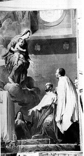 tableau, cadre : Le Cardinal de Bérulle faisant hommage à la Vierge des Religieuses Carmélites, qu'il introduisit en France