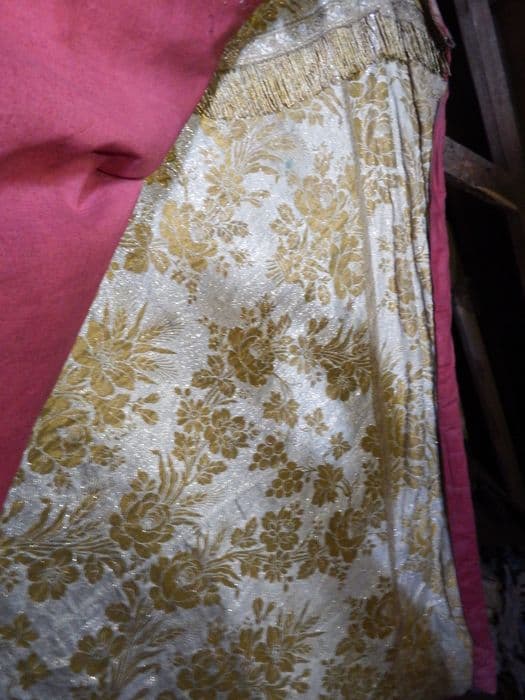 Soie blanche lamée d'argent.