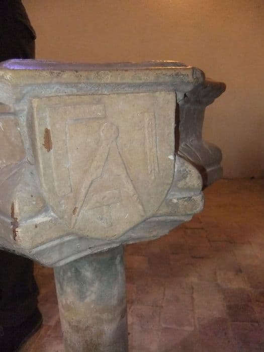 La cuve, octogonale est sculptée de feuilles sur un bandeau qui en fait le tour.