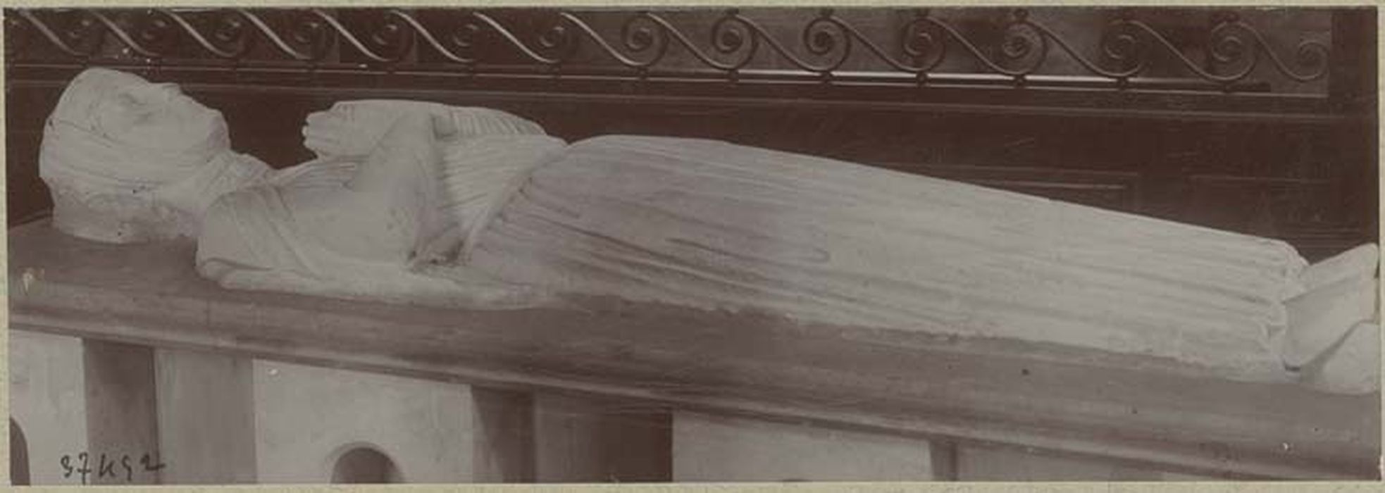 Statue funéraire. Sur un tombeau (restauration moderne), statue couchée d'une femme (probablement une comtesse de Joigny) vêtue d'une longue robe à plis étroits et d'un manteau retenu sur la poitrine par un cordon. Elle a les mains jointes, la tête coiffée d'un chaperon sur une mentonnière.