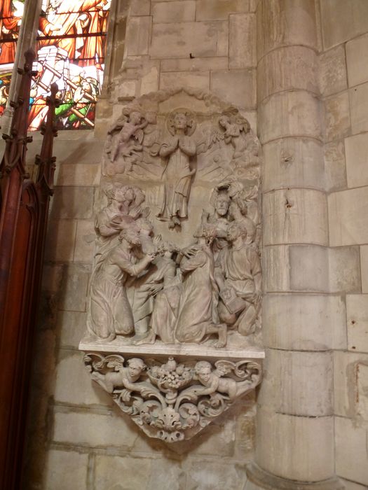 choeur, à l'est du collatéral, à l'entrée de la chapelle du chevet, de part et d'autre