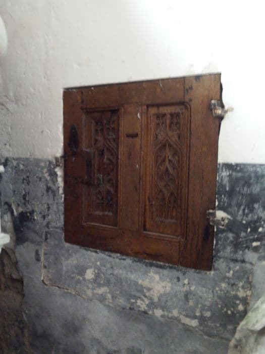 Porte fermant une niche dans la chapelle des fonts baptismaux.