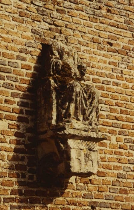 statue : Vierge à l'Enfant assise, console : la Maison de Lorette