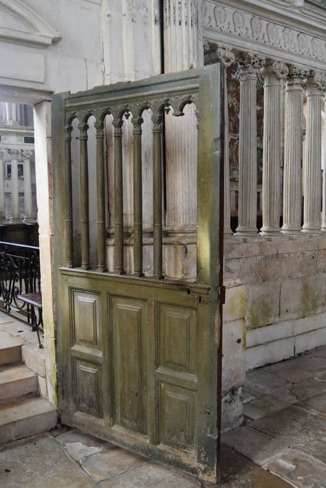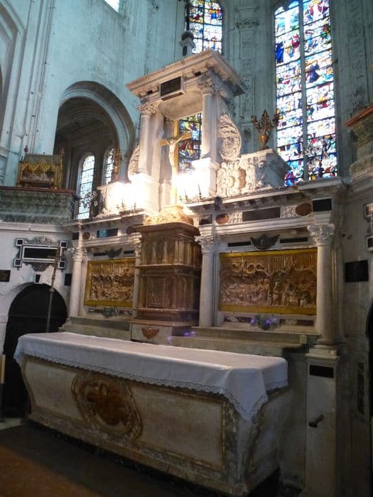 autel ; tabernacle ; retable ; bas-relief (4) ; statue (2) ; clôture de choeur ; porte (2)
