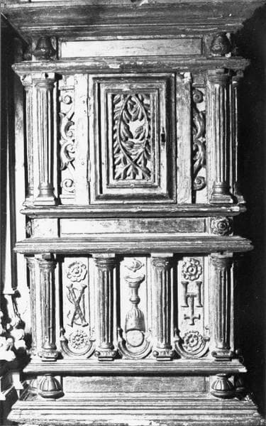 POP | Plateforme ouverte du patrimoineautel, tabernacle, retable, 4 bas-reliefs : Les Quatre évangélistes, 2 statuettes : Saint Jérôme, Saint Jean-Baptiste (maître-autel), clôture de choeur, 2 portes