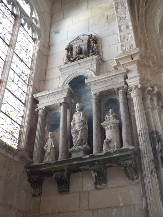 POP | Plateforme ouverte du patrimoineretable, 3 statues : Saint Pierre, Sainte assise au sommet d'une tour, Saint religieux