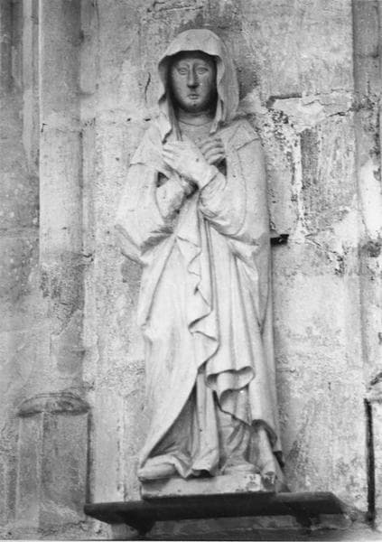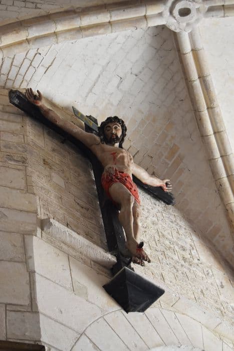 bas-côté sud, 5e travée (Christ) ; choeur, chapelle sud, console de droite (Vierge) ; bas-côté nord, 2e chapelle latérale (saint Jean)