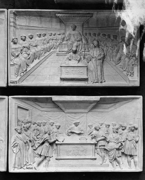 POP | Plateforme ouverte du patrimoinebas-reliefs : Duprat remplissant ses fonctions de chancelier, Entrée de Duprat à Paris en qualité de létat de Clément VII, Entrée de Duprat à Sens, Duprat présidant le conseil provincial de Saint-Germain-en-Laye