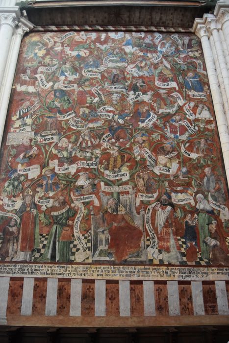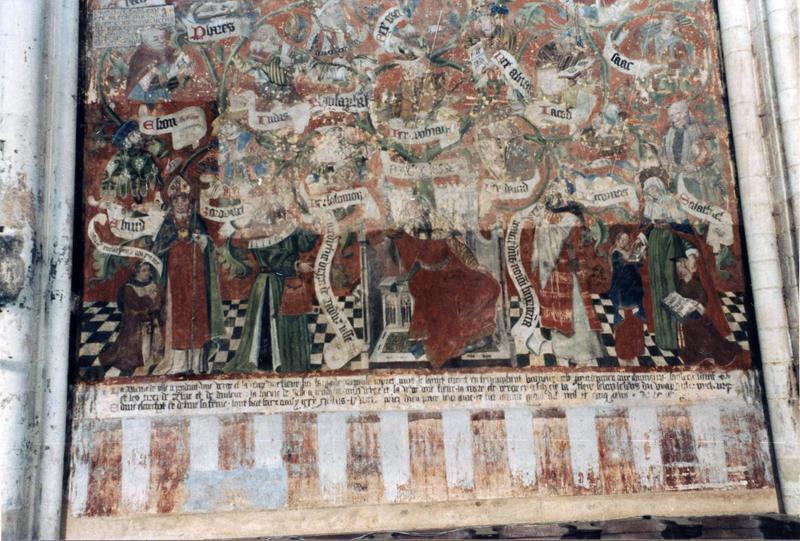 Cette fresque représente plus de 40 des ascendants du Christ. Ils sont vêtus des costumes de l'époque et mis en buste dans des médaillons circulaires. Des banderoles courtes et larges indiquent leur nom. Au bas, Jessé assis dans une chaire de bois sculpté au dossier et soubassements ornés de fenestrages.