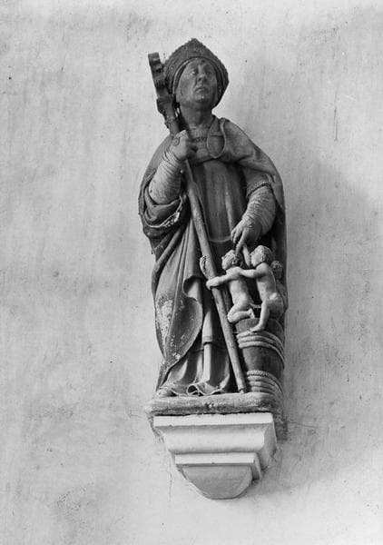Statue de saint Nicolas avec les enfants.