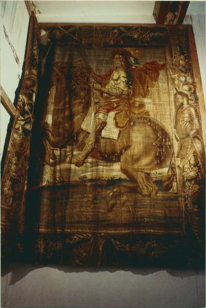 POP | Plateforme ouverte du patrimoinepièce murale (tapisserie à bordure à tableaux) : Louis XIII à cheval effectuant un saut sur place