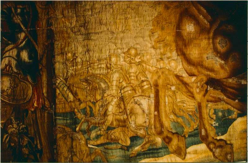 POP | Plateforme ouverte du patrimoinepièce murale (tapisserie à bordure à tableaux) : Louis XIII à cheval combattant