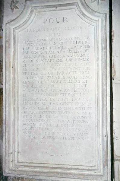 plaque funéraire d'Antoinette Lévêque, veuve Chipier