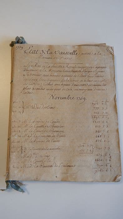 manuscrit : Etat de la vaisselle portée à la Monnaie de Paris