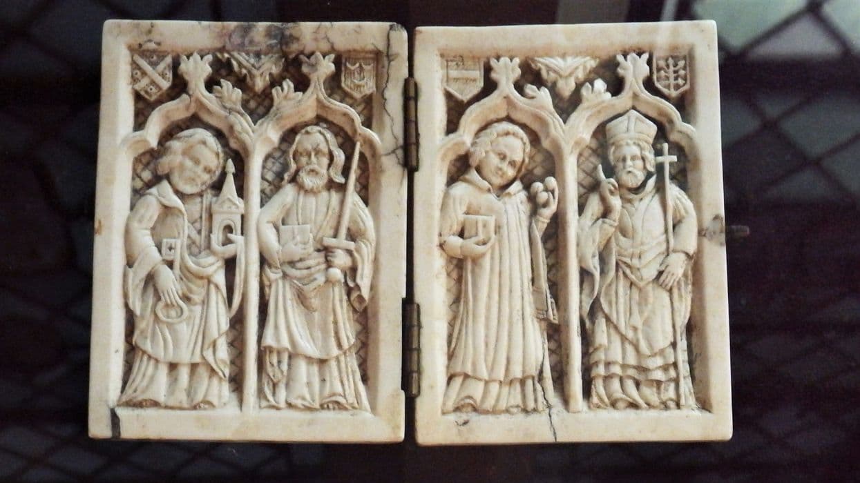 POP | Plateforme ouverte du patrimoinebas-relief : Saint Pierre et saint Paul, Saint Etienne et saint Jacques le Mineur
