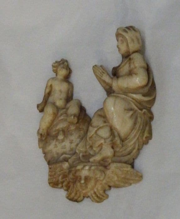 groupe sculpté : La Vierge en adoration devant l'Enfant Jésus