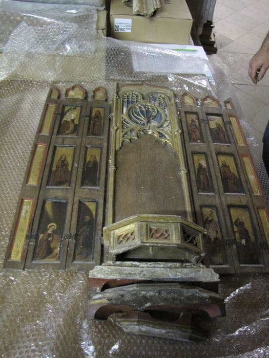 polyptique : L'Annonciation, La Visitation, La Nativité, La Présentation au Temple, L'Adoration des Mages, Le Massacre des Innocents, Saint Pierre
