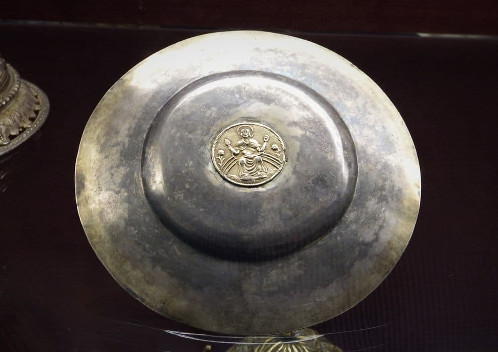 patène : Le Christ assis sur l'arc-en-ciel et nimbé, assis sur son trône et bénissant des 2 mains