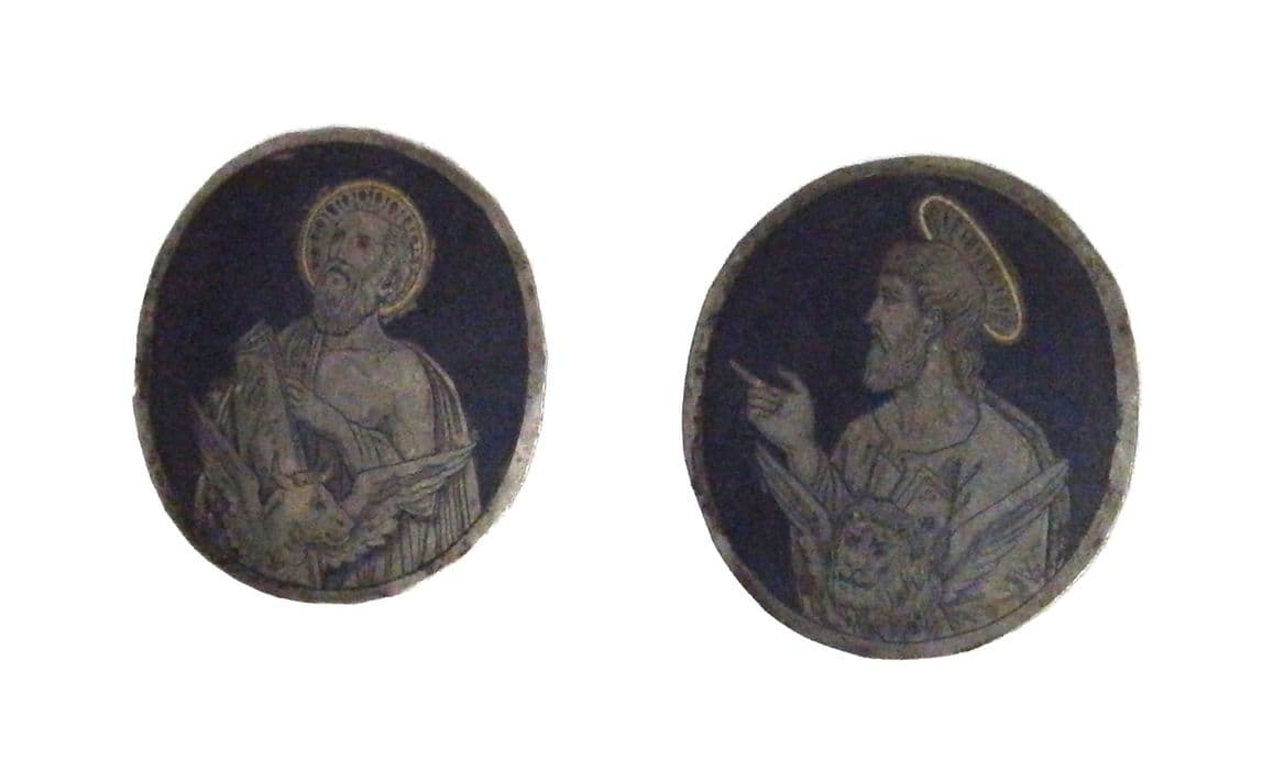 Inv. 108 bis. Argenterie (supplément) : 2 médaillons d'argent représentant en nielles, l'un saint Marc, l'autre saint Luc.