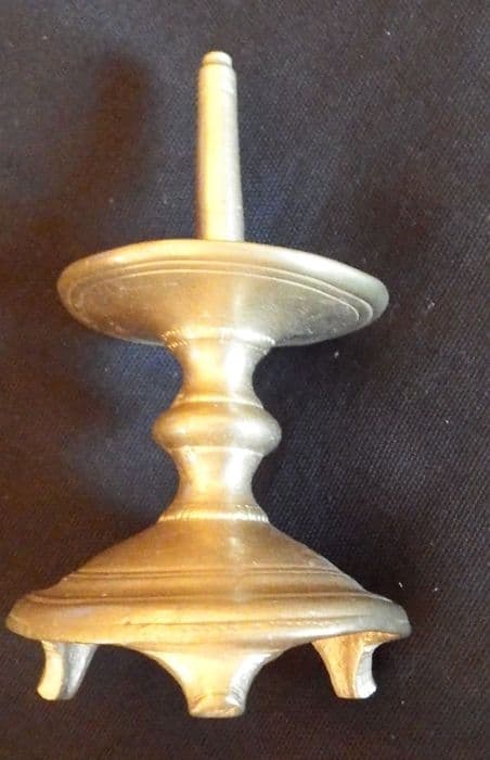 Inv. 112. Cuivre, bronze et fer : chandelier d'église à 3 pieds. Ornementation linéaire.