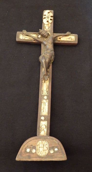 bronze ; bois : incrustations ; ivoire ; nacre ; argent : filigranes