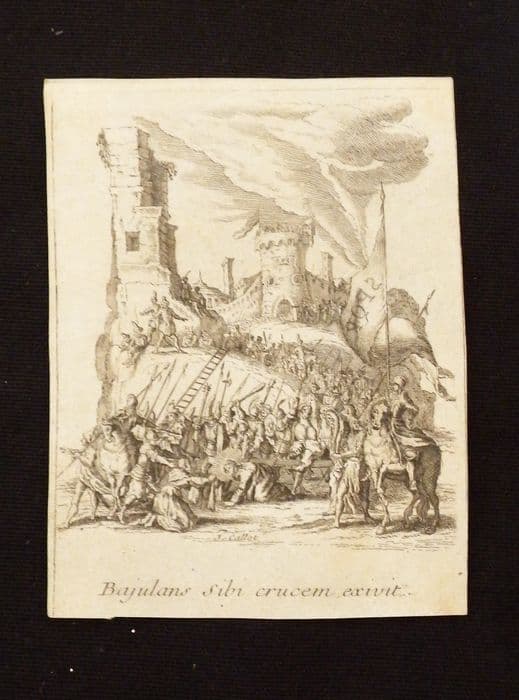 Inv. 248. Gravures et dessins : gravure. Cadre en bois doré contenant une gravure d'après Callot, où est figuré le Christ succombant sous le poids de sa croix.