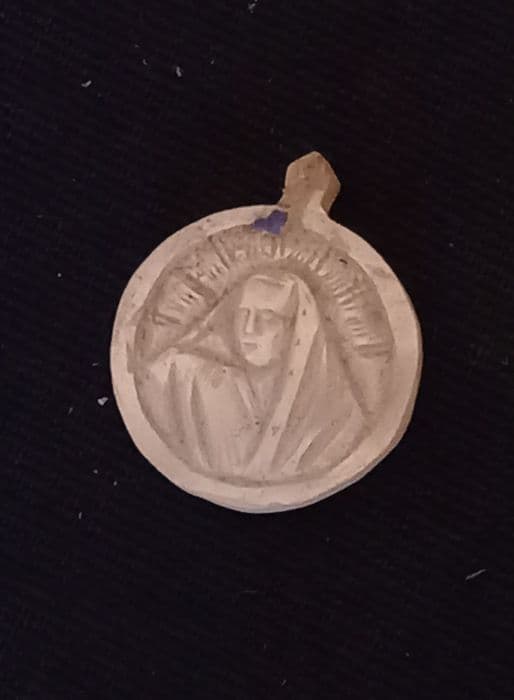 Inv. 339. Varia : nacre. Médaillon circulaire de nacre sculpté, représentant la Vierge.
