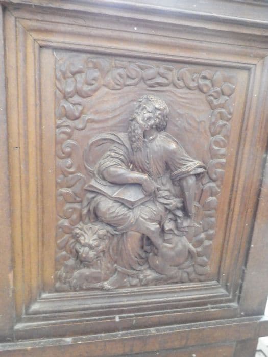 Panneau représentant saint Marc l'Evangéliste, bois sculpté.