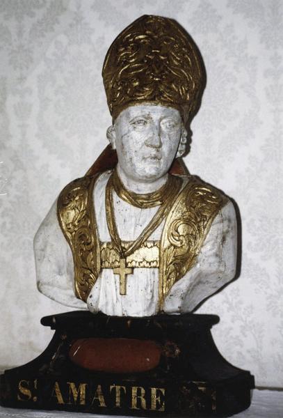 Le 10 décembre 1687, François Jacquin, premier sculpteur de son altesse royale, architecte et ingénieur du roi demeurant à Paris, passe marché pour réaliser pour Saint-Amâtre 4 bustes-reliquaires en bon bois de chêne : saint Symphorien, martyr, saint Amâtre, évêque, saint Valencs (?), évêque, sainte Brigide. Ces deux bustes peuvent correspondrent aux bustes des deux évêques, saint Valencs (?) ayant été rebaptisé saint Eusèbe puisque par décrêt du 30 janvier 1791, saint Amâtre est supprimé et rattaché à saint Eusèbe. Dès le 2 juillet 1798, les bustes de saint Amâtre et saint Eusèbe figurent sur les inventaires de l'église Saint-Eusèbe.
