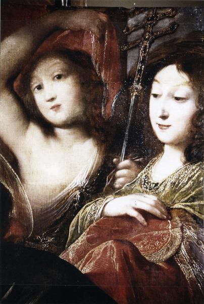 Trouvé après l'incendie de l'église en 1996. Tableau tellement noirci que son iconographie était illisible : seul le Christ et son côté transpercé se devinait vaguement. Claude Vignon : né à Tours en 1596, reçu à la Guilde des peintres en 1616 et mort à Paris en 1670. Le thème de la vocation de saint Pierre a été traité à plusieurs reprises par Claude Vignon. L'un d'entre eux est signé et daté de 1624. La composition n'est certes pas la même mais les dimensions sont analogues et on y retrouve les mêmes caractéristiques de traitement des visages et des drapés. Datation : 1620-1625. Selon Mme Judith Kagan, ce tableau a pu être acheté à Paris où les ventes d'oeuvres d'art ont été très nombreuses dans les années 1810-1820. S'il vient de Paris, ce tableau pourrait être un petit may, aujourd'hui perdu, peint pour la confrérie des orfèvres de la cathédrale Notre-Dame de Paris. Chaque 1er jour du mois de mai, la communauté des orfèvres de Paris offrait à la Vierge un tableau votif. Ces tableaux, dont les dimensions sont proches de celles du panneau de l'église Saint-Eusèbe d'Auxerre, sont posés dans les lambris de la chapelle Sainte-Anne. Claude Vignon réalise pour la communauté des orfèvres de Paris, une Incrédulité de saint Thomas en 1623 et une Vocation de saint Pierre en 1624. Sur le tableau d'Auxerre, la présence de rehauts épais de dorure des orfrois, de la tiare, du costume de l'ange et de la croix à triple traverse, ainsi que la trace, sous la polychromie, de l'existence d'une fine couche d'or fin, évoquent les orfèvres. Les petits may de Claude Vignon figurent sur les inventaires révolutionnaires de Notre-Dame de Paris puis en 1794 au dépôt des Petits-Augustins. Le panneau de Saint-Eusèbe a-t-il alors été acheté puis donné à Saint-Eusèbe comme le fut, en 1834, le prestigieux suaire de Germain ?