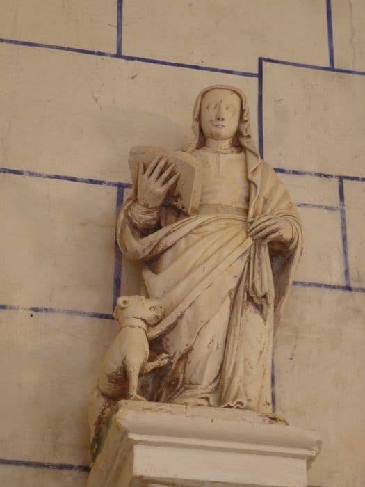 Bien que l'on ait d'abord (commission, arrêté de protection) identifié cette statue comme représentant une sainte Brigitte, il pourrait en fait s'agit d'une représentation de sainte Marthe de Perse (source : récolement du 27/04/2016) qui, à Tarascon, aurait dompté avec de l'eau bénite le dragon qui infestait le pays, auquel elle aurait ensuite passé sa ceinture autour du cou.