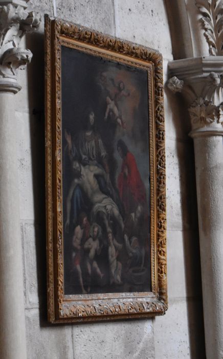 Tableau auparavant situé dans la chapelle du Sacré-Coeur, déplacé dans la chapelle Saint-Savinien (2024), avec accrochage adapté à une meilleure conservation et pour une évacuation facilitée en cas de sinistre. Le numéro d’inventaire est celui du catalogue des peintures de la cathédrale de Sens publiédans le bulletin de la Société archéologique de Sens de 2019 (source : DRAC).