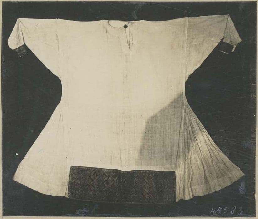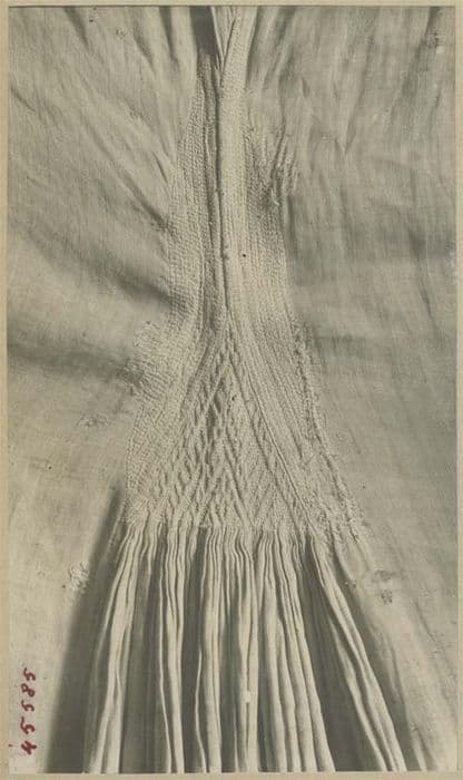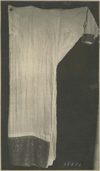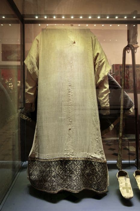 L'aube, faite de grandes pièces de lin écru, est bordée aux poignets de soies façonnées ; le bas de l'aube est garni devant et derrière de larges bandes de samit de soie brodée de fils métalliques formant un décor de cercles. Deux soufflets en toile de lin donnent de l'ampleur de chaque côté de l'aube. L'encolure est arrondie et fermée d'un bouton de soie façonnée.