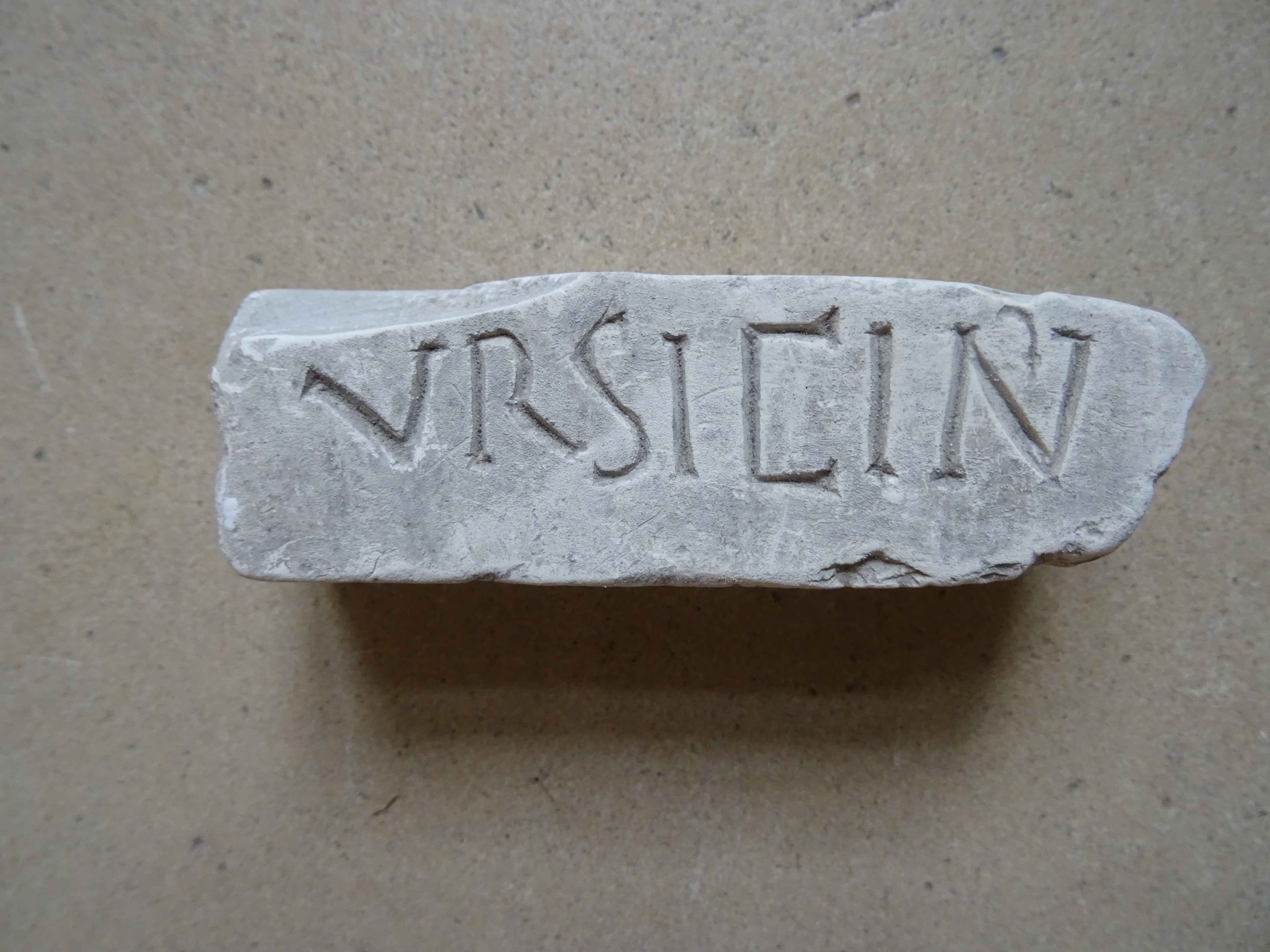 Sur la face supérieure d'un parallépipède de forme irrégulière, est gravée l'inscription VRSICIN.