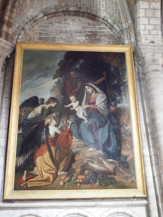 tableau et son cadre : Sainte Famille, dit L'Offrande des anges à la Sainte Famille
