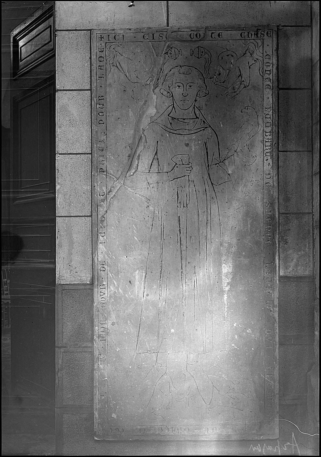 Pierre tombale à effigie gravée.