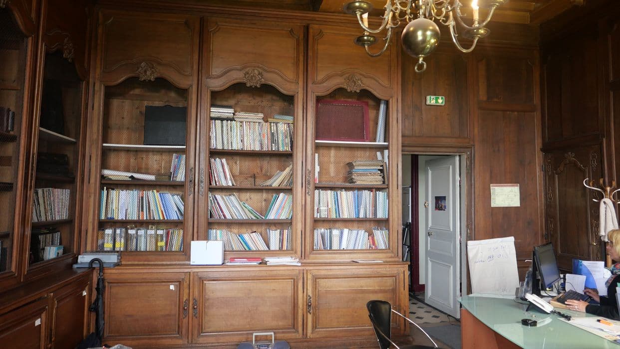rez-de-chaussée : bibliothèque, petit salon, grand salon ; 1er étage : chambre face à l'escalier