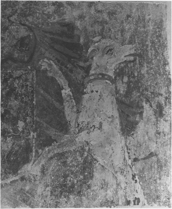 Restes de peinture murale. Il représente saint Martin, patron de l'église, à cheval, coupant un pan de son manteau.