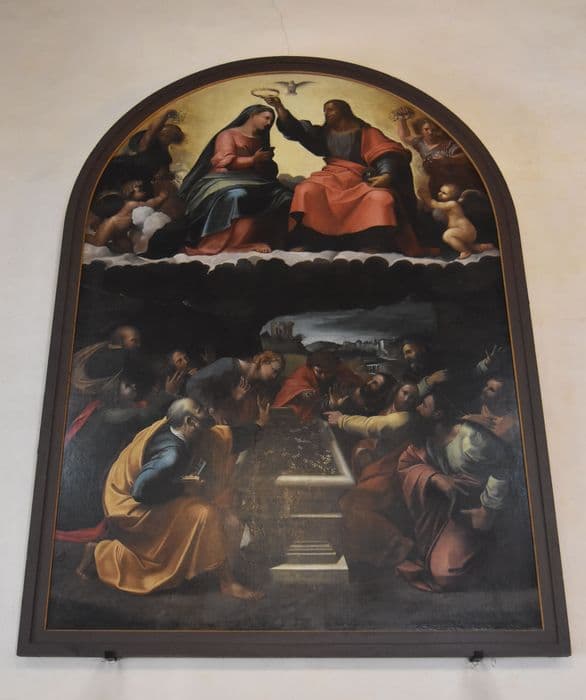Tableau du Couronnement de la Vierge, copie antérieure à 1815, d'après le Couronnement de la Vierge dit de Monteluce, exécuté par Giovanni Francesco Penni, Jules Romain et Perino del Vaga, selon un projet de Raphaël.