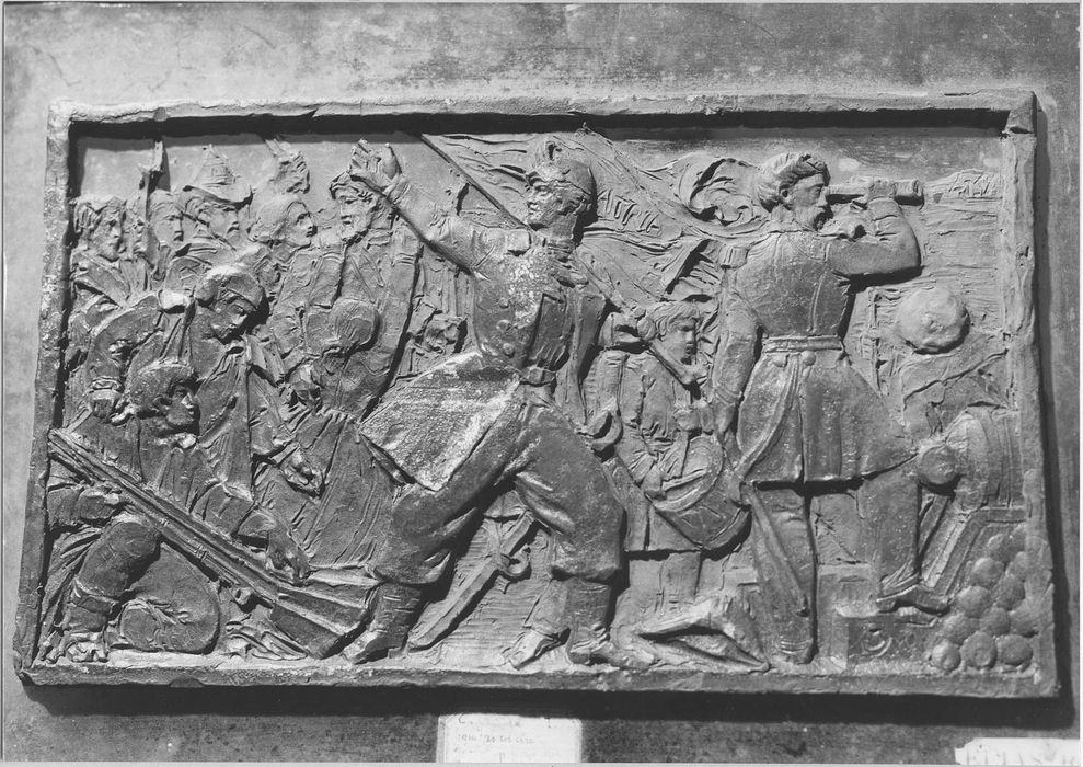 Scène de bataille (?) , bas-relief, esquisse, cire.