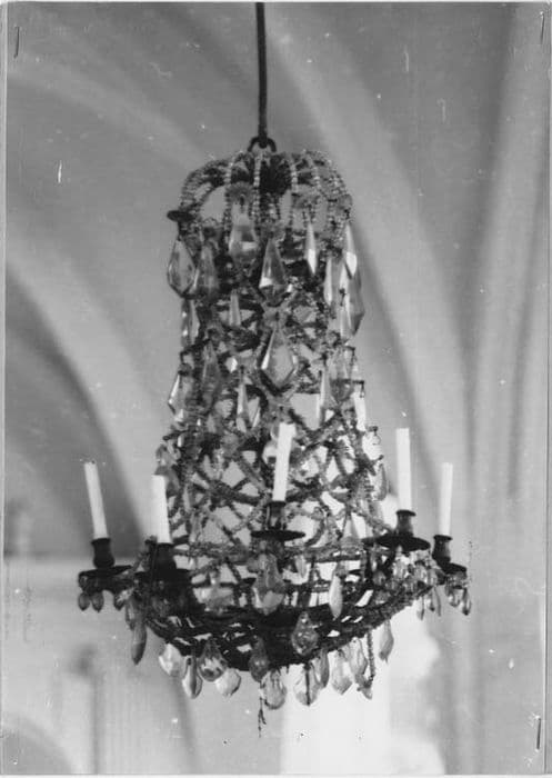 Lustre formé de huit bougeoirs, et pendeloques de cristal.