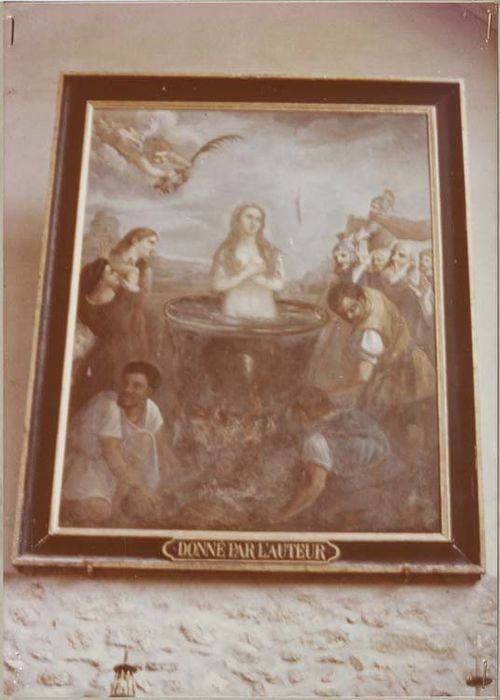 Le cartel apposé sur le cadre en bois indique donné par l'auteur. Le tableau est signé en bas à droite Mirets 1879. Don du tableau de Ste Julienne à l'église le 20 avril 1879 ; tableau mentionné dans l'inventaire des biens mobiliers dressé en 1905 ; à comparer avec ceux conservés à Maisse et Puiselet-le-Marais.