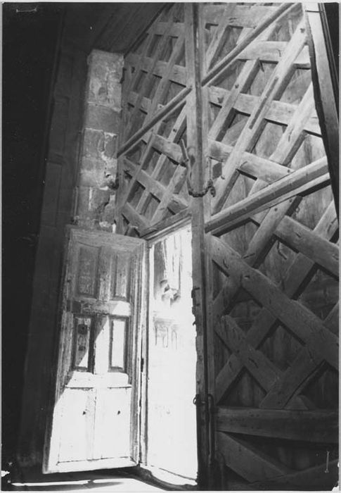 Objet appartenant à un ensemble composé de portes (2 battants) en bois clouté.