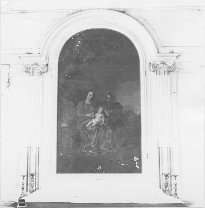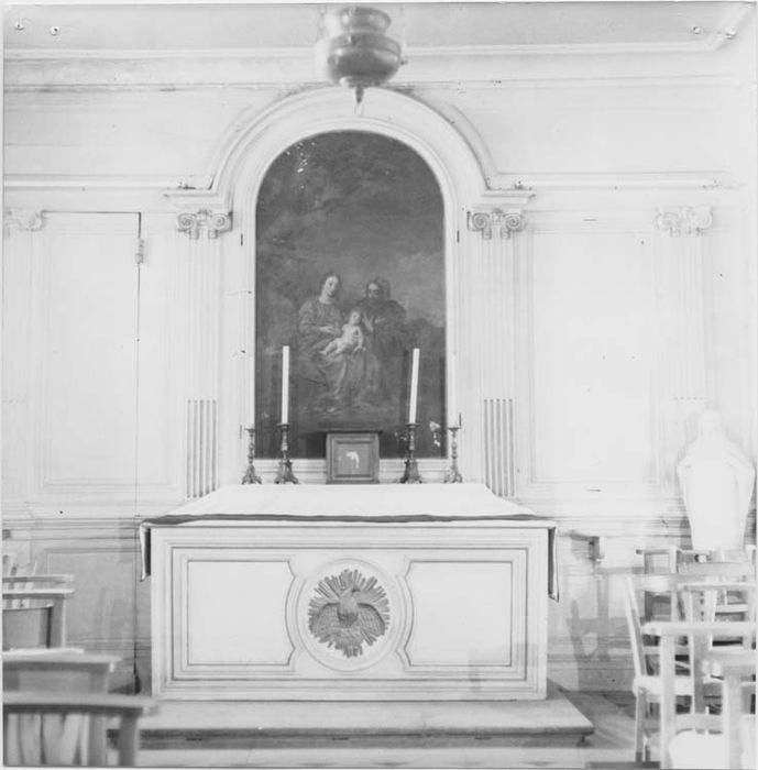 autel ; retable ; tableau : Sainte Famille (La) ; boiseries de la chapelle seigneuriale