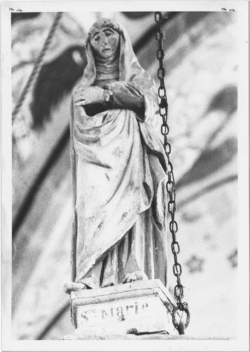 Statue qui fait pendant à Saint Jean (PM91001508) et proche de la facture de la statue de Sainte Anne (PM91001509).