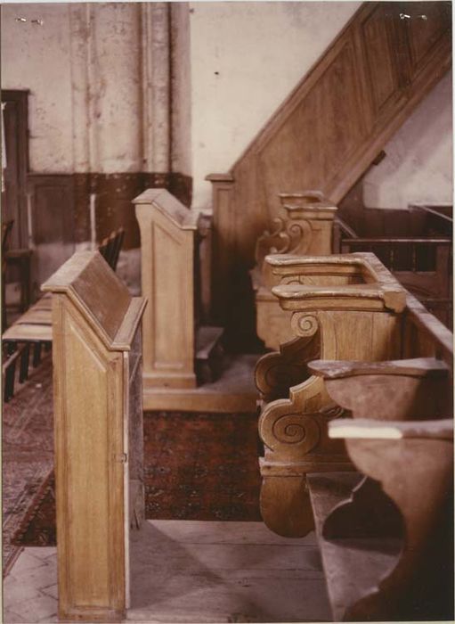 Deux stalles dont une stalle double avec miséricorde sculptée.