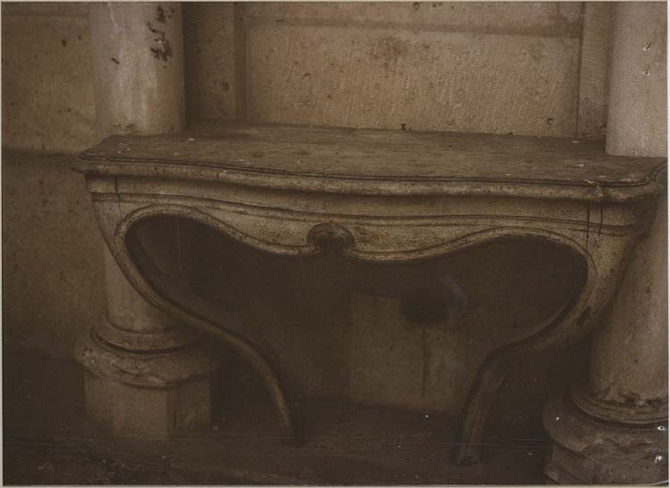 La console enserre deux colonnettes ; les pieds ont une courbure très prononcée ; deux courbes accolées sous le plateau.
