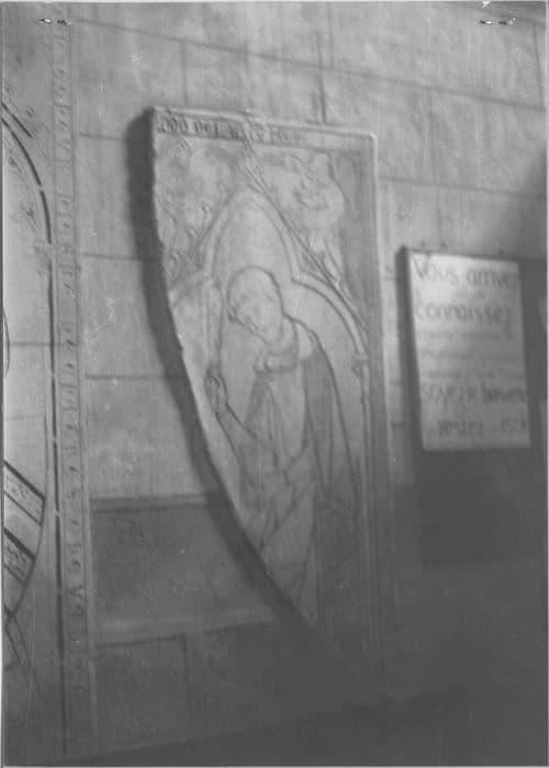 dalle funéraire avec effigie gravée d'un écolâtre incomplète