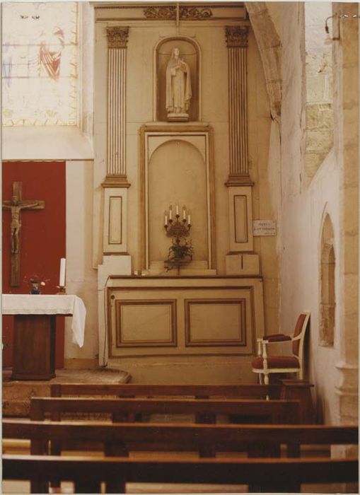 Dans le choeur de l'église, de chaque côté de la fenêtre.